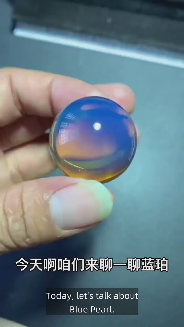 10mm Golden Blue Amber Pendant Necklace for Women, Gold Plated Adjustable Chain, Meaningful Gift for Her